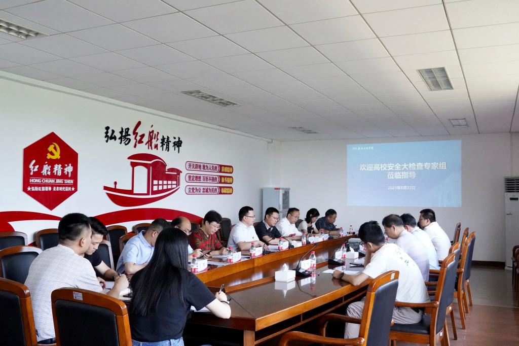 6月22日下午,省教育厅“平安护航建党百年”高校安全检查组专家组、嘉兴职业技术学院副校长庄应强一行五人来校检查安全工作。校党委副书记胡文蔚作校园安全隐患排查整治工作汇报。