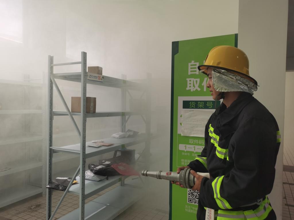 演练模拟中邮驿站内发生火灾,参演人员严肃认真,员工迅速有序逃生,微型消防站及时出警处置火情。活动过程中还就干粉灭火器和消火栓的使用方法进行了现场讲解、示范和指导,员工逐一进行了实操演练。