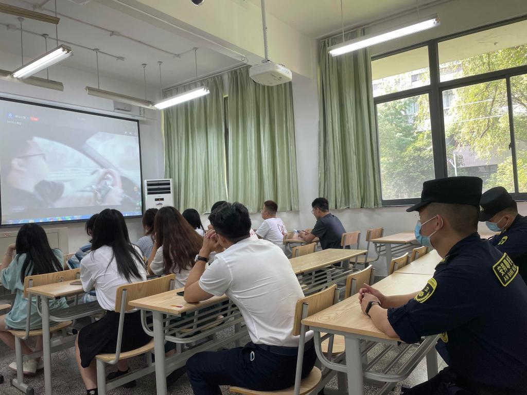 宣传保卫部教师、校卫队成员、后勤保障部工作人员,以及部分学生代表在我校教二A138集中收看《“全民反诈”大讲堂》网络直播讲座,二级学院自行组织收看。本次活动做到了全校八个二级学院全覆盖,全体师生对视频讲座高度关注,在观看的过程中都详细记录,认真学习。