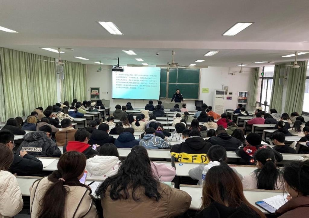 此次宣传活动创新形式,依托校园电子屏联网滚动播放反诈宣传电子海报及案例短视频,特邀新兴派出所冯坚警官来校开展反诈宣传讲座,在春华苑广场发放反诈骗宣传单,在宣传主题横幅上进行签名倡议等方式进行反诈防骗宣传。