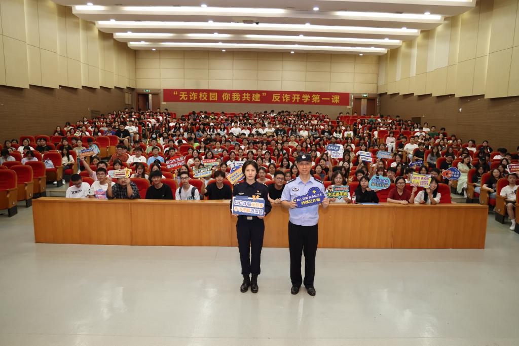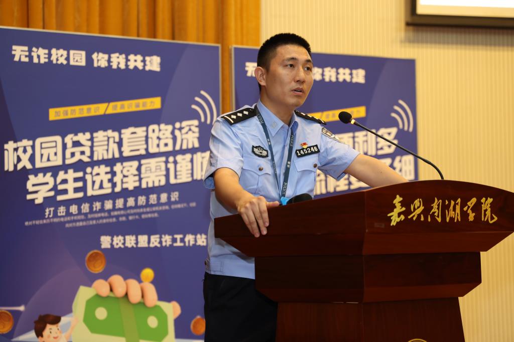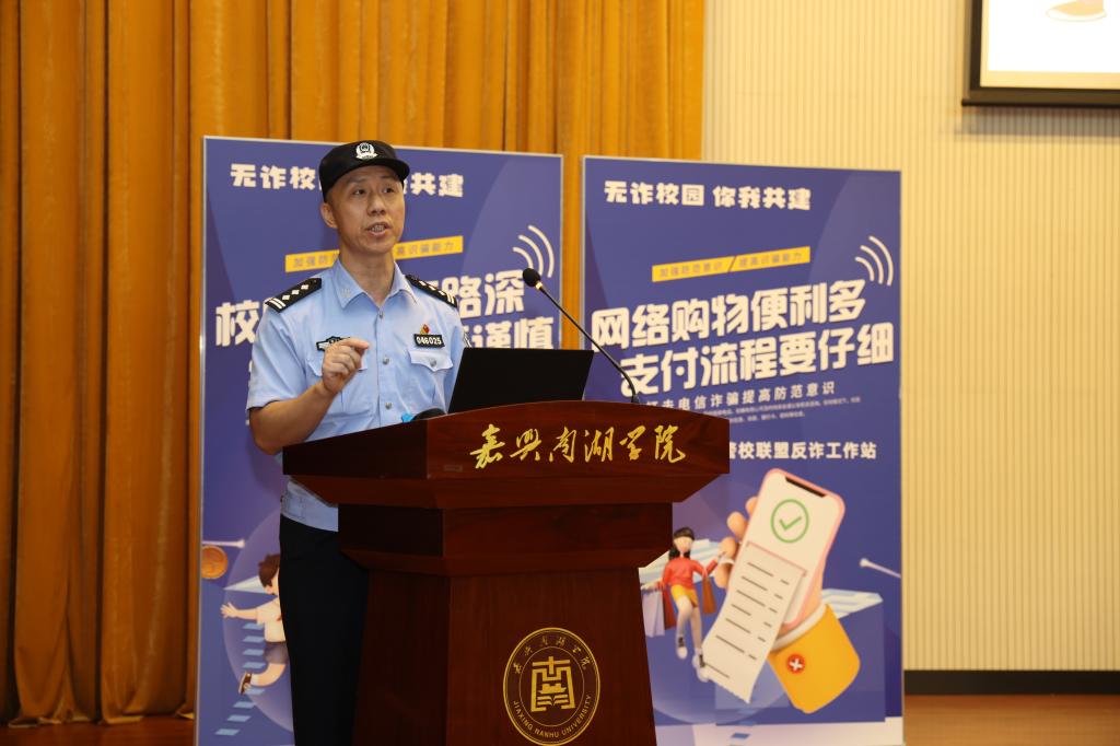 为进一步增强全体师生的防诈防骗能力,有效遏制校园电信网络诈骗。9月6日晚,由嘉兴市南湖区反诈办、新兴派出所与我校安全保卫处、商贸管理学院联合举办的“无诈校园 你我共建”——反诈开学第一课在学校第二报告厅举行。