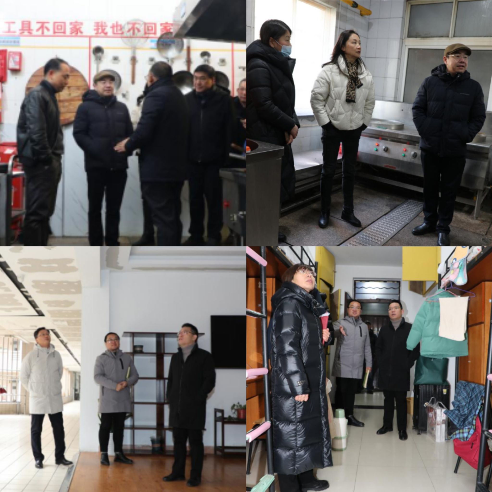 校党委书记倪沪平、纪委书记柯羽带队前往行政楼、食堂、校内超市、学生寝室等场所,实地检查假期安全工作部署、安全责任制落实情况,对厨电设备、消防设施等进行现场查看,对检查中发现的安全隐患点,要求相关责任部门和责任人立行立改、即知即改、真改实改,将各类隐患消除在萌芽状态。