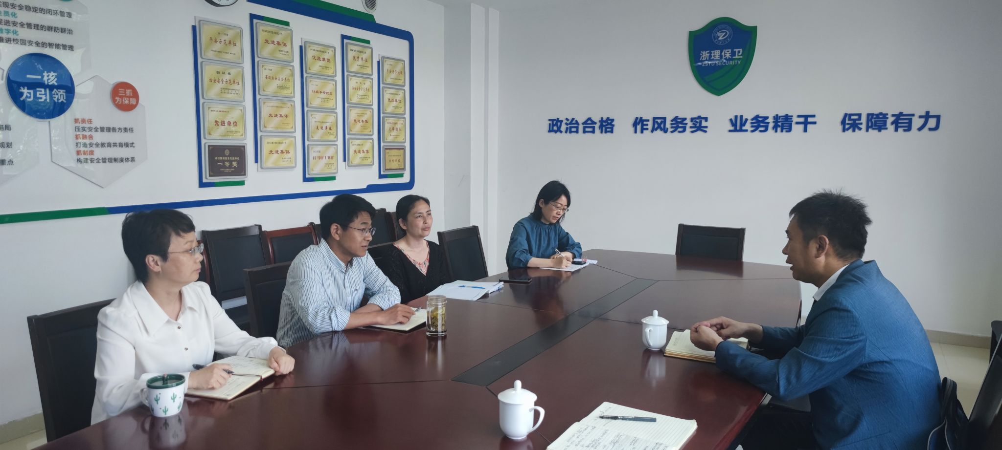 5月15日上午,安全保卫处副处长刘欢带队赴浙江理工大学交流学习,浙江理工大学保卫处处长黄新海,副处长朱继欢、章迪薇亲切会见并全程陪同。
